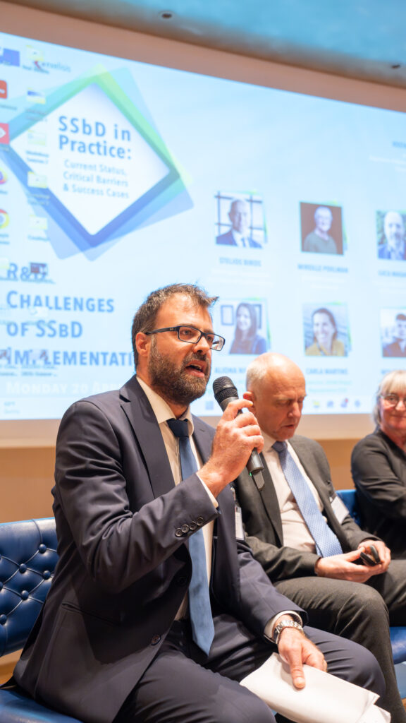 The second session focused on industrial perspectives, presenting real-world examples of SSbD implementation across different sectors. Representatives from industry shared practical experiences, demonstrating how SSbD principles can be applied to support innovation while addressing sustainability and regulatory requirements.